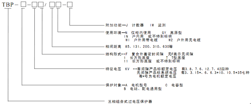 本產(chǎn)品尚無嚴(yán)格的國標(biāo)定義規(guī)則,公司產(chǎn)品的型號為TBP,其型號定義如下: