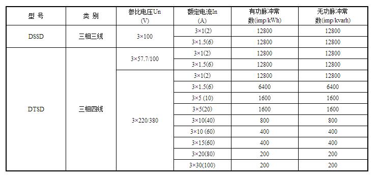 l 規(guī)格型號(hào)與脈沖常數(shù)對(duì)照表
