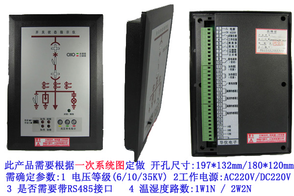 開(kāi)關(guān)狀態(tài)指示儀集成了一次回路模擬圖、斷路器位置、開(kāi)關(guān)狀態(tài)、接地閘刀位置、彈簧儲(chǔ)能狀態(tài)、高壓帶電指示、高壓帶點(diǎn)閉鎖及溫、濕度控制等多功能于一體,指示功能可分可合,用戶選用時(shí)只要提供一次方案圖即可。另外產(chǎn)品還可以根據(jù)用戶的要求實(shí)現(xiàn)回路電量參數(shù)及溫、濕度等控制功能產(chǎn)品一體化布局配套裝備于開(kāi)關(guān)柜,這將簡(jiǎn)化過(guò)去開(kāi)關(guān)柜的面板布局。它將取代現(xiàn)有的一次回路模擬指示牌、電磁式開(kāi)關(guān)狀態(tài)指示器、接地指示器等多種控制、指示裝置,同時(shí)選配通訊功能,可將所有開(kāi)關(guān)狀態(tài)和溫濕度情況上傳至監(jiān)控中心。
